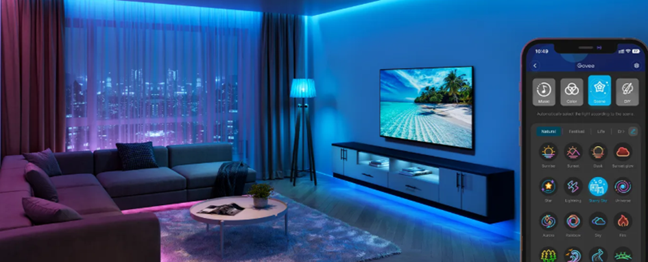 Paski LED Govee to uniwersalne rozwiązanie do każdego pomieszczenia. Sprawdzają się w salonie, sypialni i biurze, oferując pełną kontrolę nad kolorem i intensywnością światła. Z aplikacją ( Dostępna również na system IOS ) to prosty sposób na nowoczesne, funkcjonalne i estetyczne oświetlenie wnętrz.